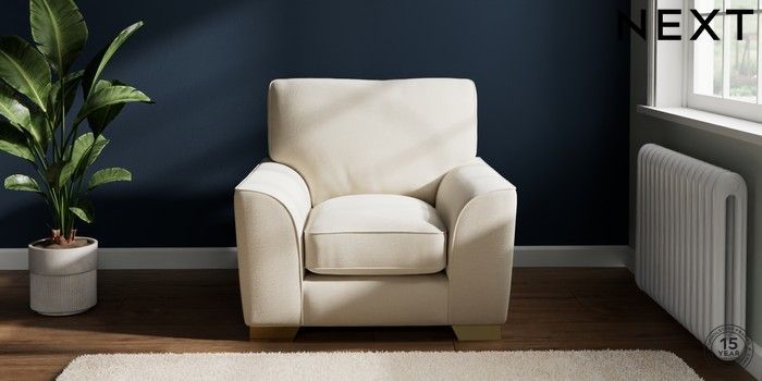 7.3.1 Buy Stamford Grand Relaxed Sit Armchair Ripple Chenille Oyster Square Angle - Brushed Brass from the Next UK online shop Click here to use our accessible website