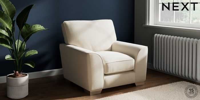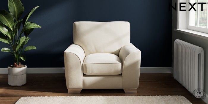 7.3.1 Buy Stamford Grand Relaxed Sit Armchair Ripple Chenille Oyster Square Angle - Chrome Metal from the Next UK online shop Click here to use our accessible website