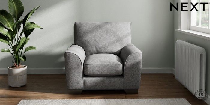 7.3.1 Buy Stamford Grand Relaxed Sit Armchair Studio Chenille Mid Grey Square Angle - Gunmetal from the Next UK online shop Click here to use our accessible website