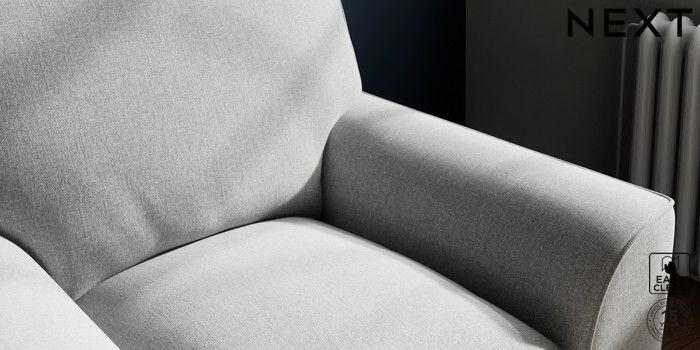 7.3.1 Buy Stamford Grand Relaxed Sit Armchair Tweedy Blend Easy Clean Light Silver Grey Square Angle - Chrome Metal from the Next UK online shop Click here to use our accessible website