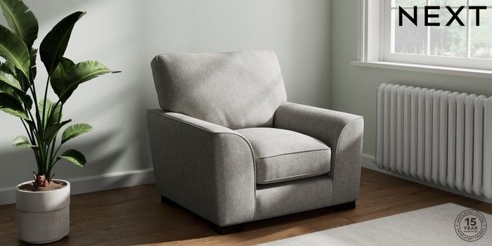 7.3.1 Buy Stamford Grand Relaxed Sit Armchair Tweedy Chenille Mid Grey Square Angle - Dark from the Next UK online shop Click here to use our accessible website