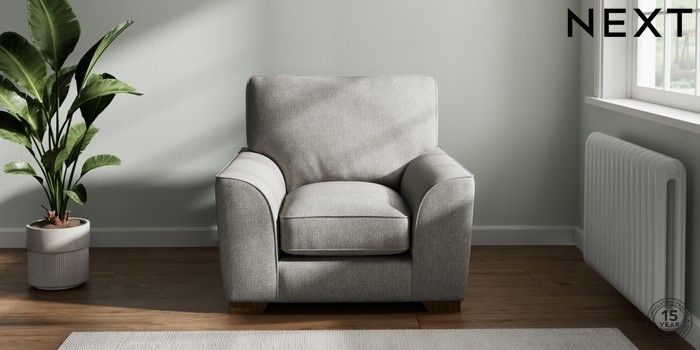 7.3.1 Buy Stamford Grand Relaxed Sit Armchair Tweedy Chenille Mid Grey Square Angle - Mid from the Next UK online shop Click here to use our accessible website