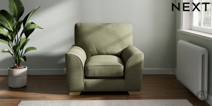 7.3.1 Buy Stamford Grand Relaxed Sit Armchair Tweedy Chenille Mid Moss Green Square Angle - Light from the Next UK online shop Click here to use our accessible website
