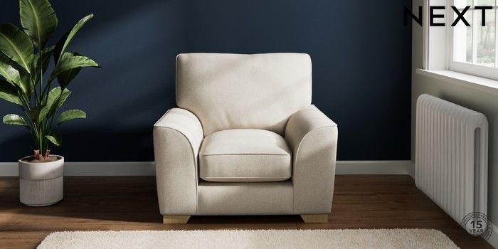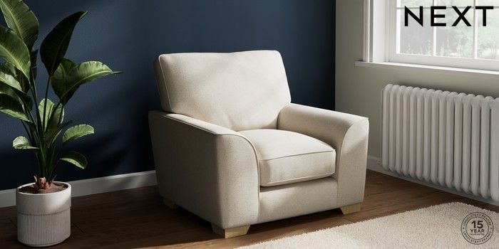 7.3.1 Buy Stamford Grand Relaxed Sit Armchair Tweedy Chenille Oyster Square Angle - Light from the Next UK online shop Click here to use our accessible website