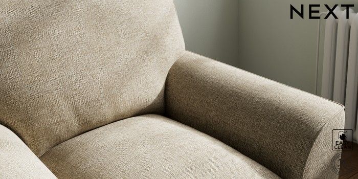 7.3.1 Buy Stamford Grand Relaxed Sit Armchair Woven Chenille Easy Clean Mid Natural Square Angle - Dark from the Next UK online shop Click here to use our accessible website