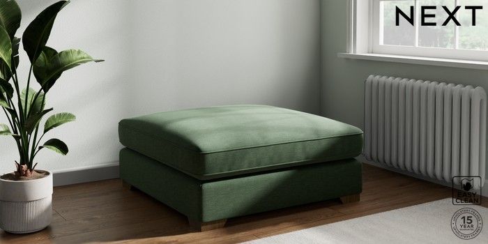 7.2.10 Buy Stamford Grand Relaxed Sit Extra Large Footstool Fine Chenille Easy Clean Mid Khaki Green Square Angle - Mid from the Next UK online shop Click here to use our accessible website