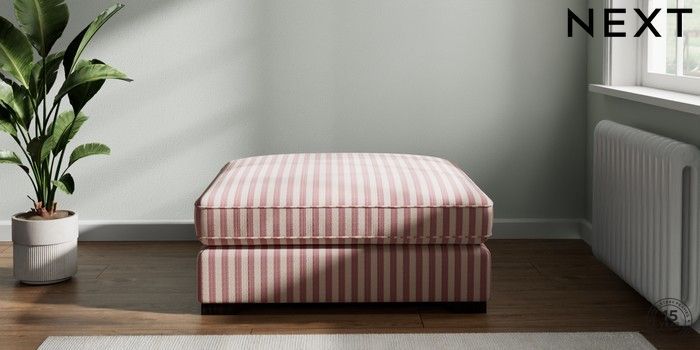 7.2.10 Buy Stamford Grand Relaxed Sit Extra Large Footstool Bold Chenille Stripe Dark Pink Square Angle - Dark from the Next UK online shop Click here to use our accessible website