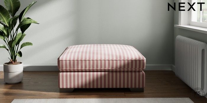 7.2.10 Buy Stamford Grand Relaxed Sit Extra Large Footstool Bold Chenille Stripe Dark Pink Square Angle - Gunmetal from the Next UK online shop Click here to use our accessible website