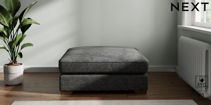 7.2.6 Buy Stamford Grand Relaxed Sit Extra Large Footstool Boucle Weave Easy Clean Charcoal Grey Square Angle - Mid from the Next UK online shop Click here to use our accessible website