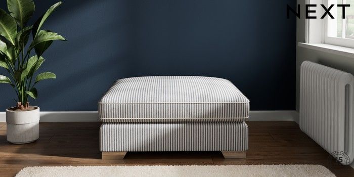 7.2.10 Buy Stamford Grand Relaxed Sit Extra Large Footstool Chenille Stripe Slate Blue Square Angle - Chrome Metal from the Next UK online shop Click here to use our accessible website