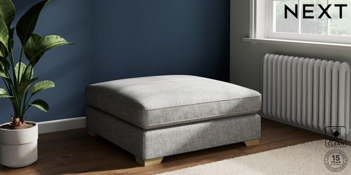 7.3.1 Buy Stamford Grand Relaxed Sit Extra Large Footstool Chunky Boucle Easy Clean Light Grey Square Angle - Light from the Next UK online shop
