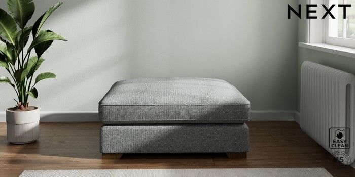 7.2.6 Buy Stamford Grand Relaxed Sit Extra Large Footstool Chunky Boucle Easy Clean Mid Grey Square Angle - Mid from the Next UK online shop Click here to use our accessible website
