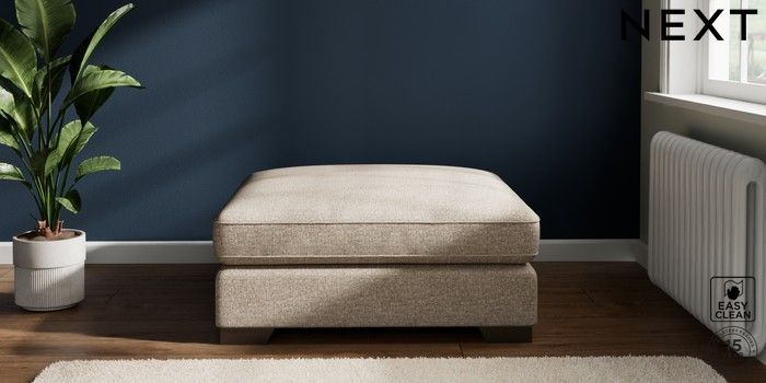 7.2.6 Buy Stamford Grand Relaxed Sit Extra Large Footstool Chunky Boucle Easy Clean Mid Natural Square Angle - Gunmetal from the Next UK online shop Click here to use our accessible website