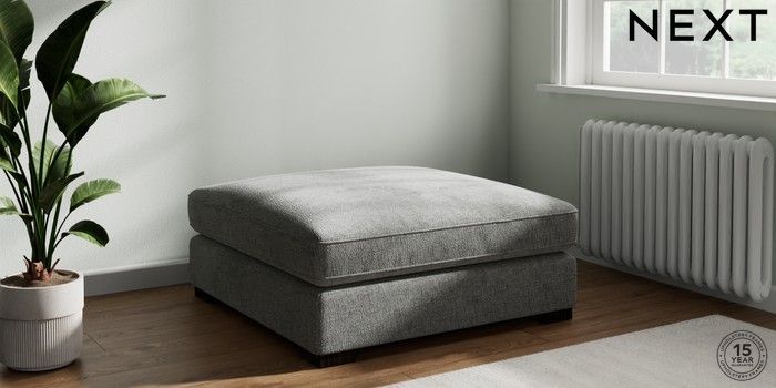 7.3.1 Buy Stamford Grand Relaxed Sit Extra Large Footstool Chunky Chenille Dark Grey Square Angle - Dark from the Next UK online shop