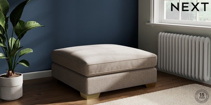 7.3.1 Buy Stamford Grand Relaxed Sit Extra Large Footstool Chunky Chenille Light Dove Square Angle - Brushed Brass from the Next UK online shop