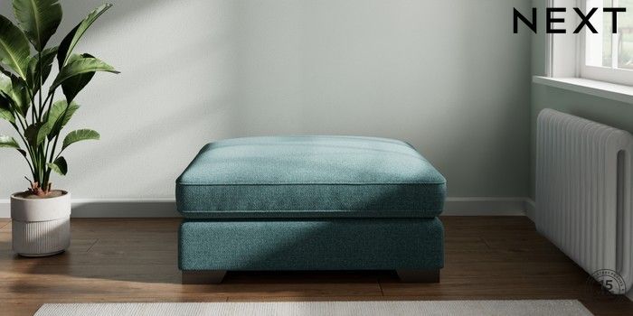 7.2.6 Buy Stamford Grand Relaxed Sit Extra Large Footstool Chunky Chenille Mid Teal Green Square Angle - Gunmetal from the Next UK online shop Click here to use our accessible website