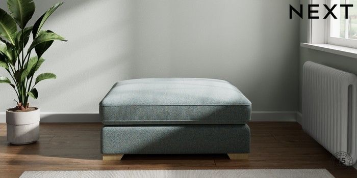 7.2.6 Buy Stamford Grand Relaxed Sit Extra Large Footstool Chunky Marl Mid Blue Square Angle - Light from the Next UK online shop Click here to use our accessible website