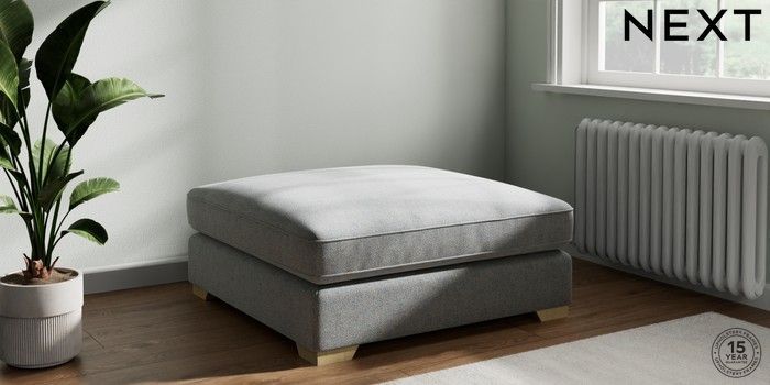 7.3.1 Buy Stamford Grand Relaxed Sit Extra Large Footstool Chunky Marl Mid Grey Square Angle - Light from the Next UK online shop