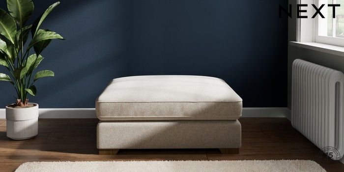 7.2.6 Buy Stamford Grand Relaxed Sit Extra Large Footstool Chunky Marl Oyster Square Angle - Mid from the Next UK online shop Click here to use our accessible website