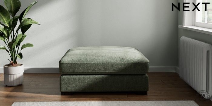 7.2.6 Buy Stamford Grand Relaxed Sit Extra Large Footstool Chunky Texture Mid Forest Green Square Angle - Dark from the Next UK online shop Click here to use our accessible website