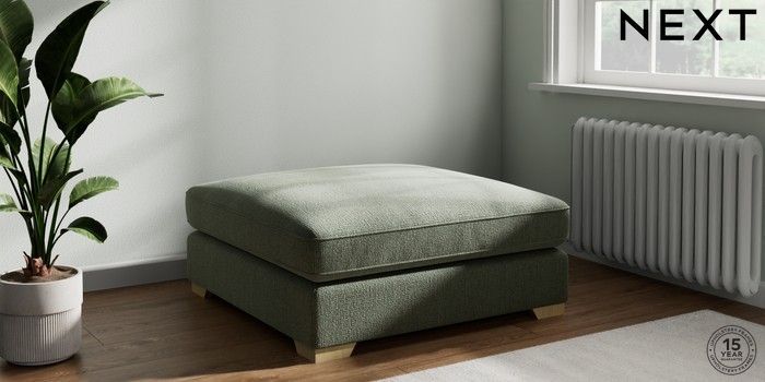 7.3.1 Buy Stamford Grand Relaxed Sit Extra Large Footstool Chunky Texture Mid Forest Green Square Angle - Light from the Next UK online shop