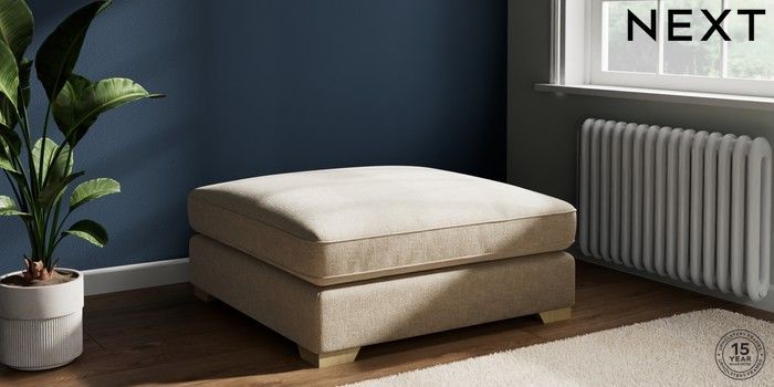 7.3.1 Buy Stamford Grand Relaxed Sit Extra Large Footstool Chunky Weave Cream Square Angle - Light from the Next UK online shop
