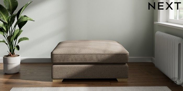 7.2.6 Buy Stamford Grand Relaxed Sit Extra Large Footstool Chunky Weave Dark Natural Square Angle - Light from the Next UK online shop Click here to use our accessible website