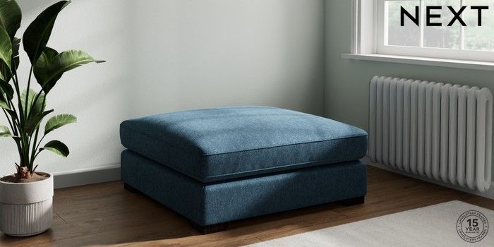 7.3.1 Buy Stamford Grand Relaxed Sit Extra Large Footstool Cotswold Chenille Dark Blue Square Angle - Dark from the Next UK online shop