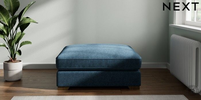 7.2.6 Buy Stamford Grand Relaxed Sit Extra Large Footstool Cotswold Chenille Dark Blue Square Angle - Mid from the Next UK online shop Click here to use our accessible website