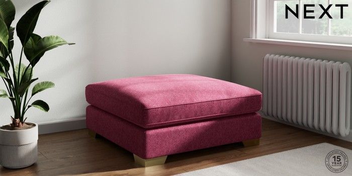 7.3.1 Buy Stamford Grand Relaxed Sit Extra Large Footstool Cotswold Chenille Dark Raspberry Pink Square Angle - Brushed Brass from the Next UK online shop