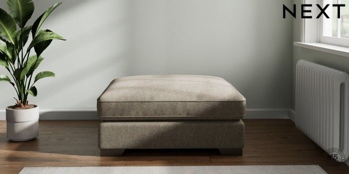 7.2.6 Buy Stamford Grand Relaxed Sit Extra Large Footstool Cotswold Chenille Mid Mink Brown Square Angle - Gunmetal from the Next UK online shop Click here to use our accessible website