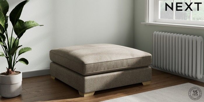 7.3.1 Buy Stamford Grand Relaxed Sit Extra Large Footstool Cotswold Chenille Mid Mink Brown Square Angle - Light from the Next UK online shop