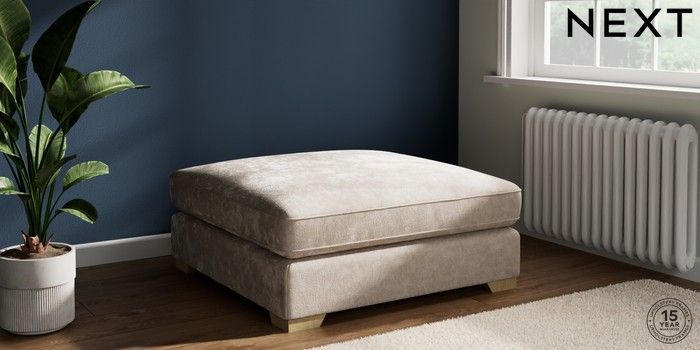 7.3.1 Buy Stamford Grand Relaxed Sit Extra Large Footstool Distressed Velour Mid Natural Square Angle - Light from the Next UK online shop
