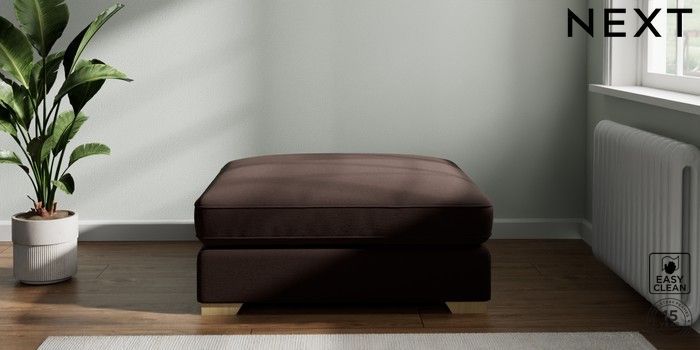 7.2.6 Buy Stamford Grand Relaxed Sit Extra Large Footstool Fine Chenille Easy Clean Chocolate Brown Square Angle - Light from the Next UK online shop Click here to use our accessible website