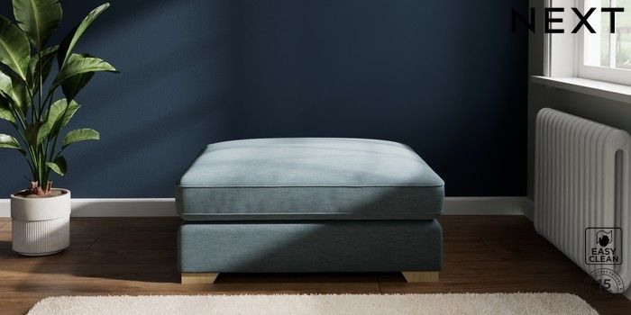 7.2.6 Buy Stamford Grand Relaxed Sit Extra Large Footstool Fine Chenille Easy Clean Mid Blue Square Angle - Light from the Next UK online shop Click here to use our accessible website