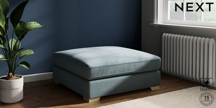 7.3.1 Buy Stamford Grand Relaxed Sit Extra Large Footstool Fine Chenille Easy Clean Mid Blue Square Angle - Light from the Next UK online shop