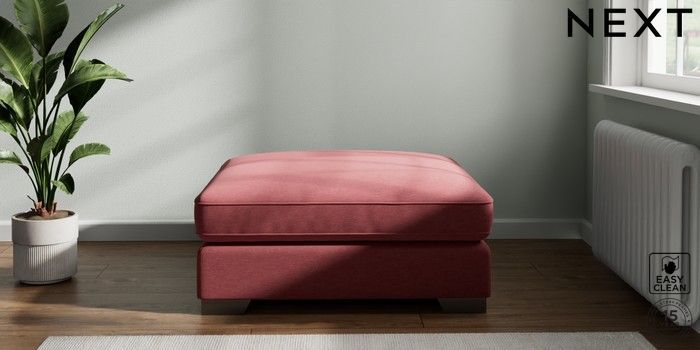 7.2.6 Buy Stamford Grand Relaxed Sit Extra Large Footstool Fine Chenille Easy Clean Mid Pink Square Angle - Gunmetal from the Next UK online shop Click here to use our accessible website