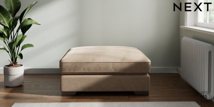 7.2.6 Buy Stamford Grand Relaxed Sit Extra Large Footstool Luxe Chenille Mid Camel Beige Square Angle - Gunmetal from the Next UK online shop Click here to use our accessible website