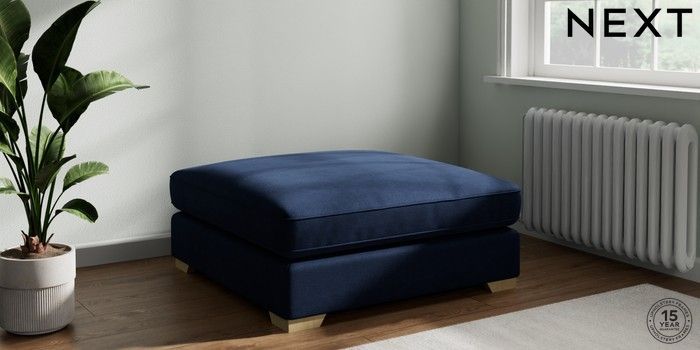7.3.1 Buy Stamford Grand Relaxed Sit Extra Large Footstool Luxe Chenille Navy Blue Square Angle - Light from the Next UK online shop