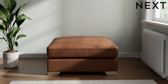 7.2.6 Buy Stamford Grand Relaxed Sit Extra Large Footstool Monza Faux Leather Easy Clean Chestnut Brown Square Angle - Chrome Metal from the Next UK online shop Click here to use our accessible website
