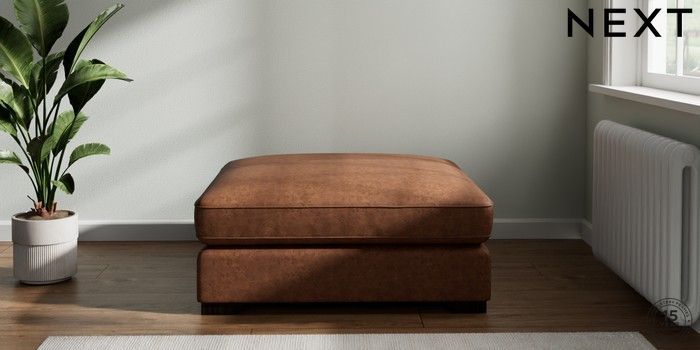 7.2.6 Buy Stamford Grand Relaxed Sit Extra Large Footstool Monza Faux Leather Easy Clean Chestnut Brown Square Angle - Dark from the Next UK online shop Click here to use our accessible website