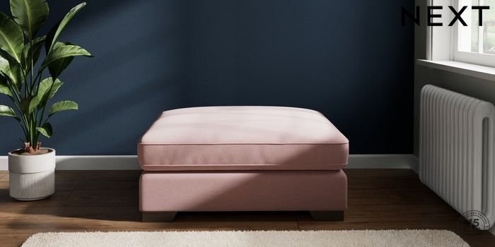 7.2.6 Buy Stamford Grand Relaxed Sit Extra Large Footstool Natural Mix Light Rose Pink Square Angle - Gunmetal from the Next UK online shop Click here to use our accessible website