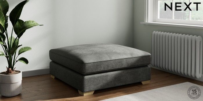 7.3.1 Buy Stamford Grand Relaxed Sit Extra Large Footstool Plush Chenille Dark Grey Square Angle - Light from the Next UK online shop
