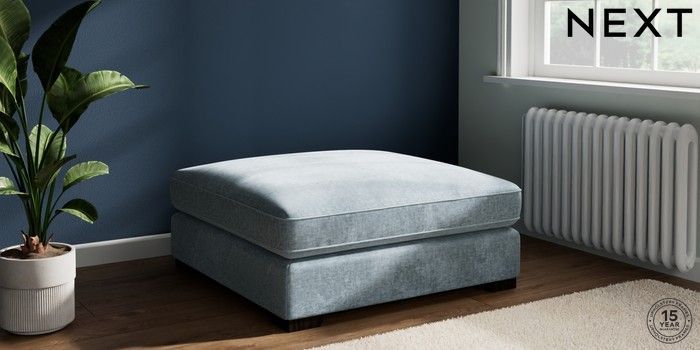 7.3.1 Buy Stamford Grand Relaxed Sit Extra Large Footstool Plush Chenille Light Blue Square Angle - Dark from the Next UK online shop