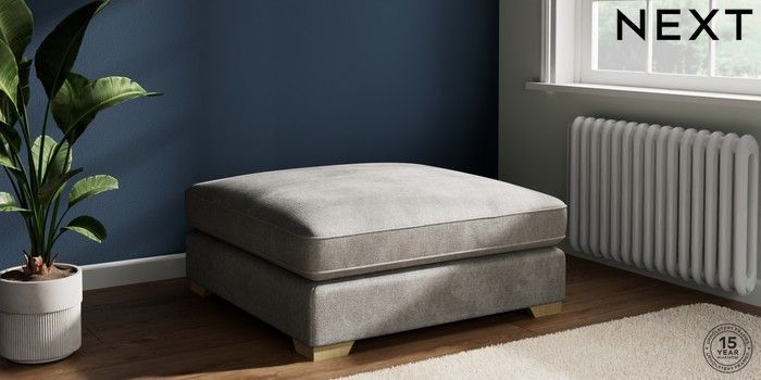 7.3.1 Buy Stamford Grand Relaxed Sit Extra Large Footstool Plush Chenille Light Grey Square Angle - Light from the Next UK online shop