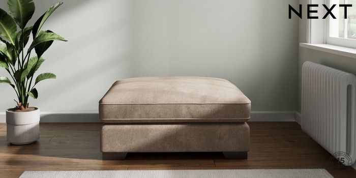 7.2.6 Buy Stamford Grand Relaxed Sit Extra Large Footstool Plush Chenille Mid Natural Square Angle - Gunmetal from the Next UK online shop Click here to use our accessible website