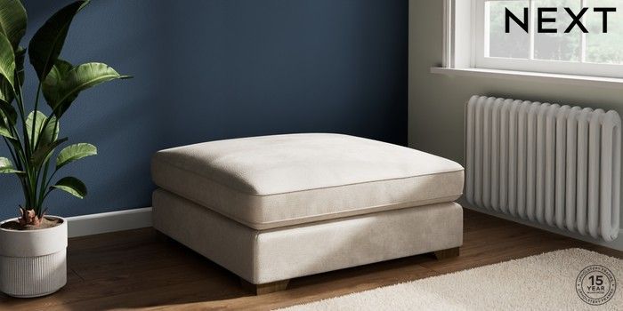 7.3.1 Buy Stamford Grand Relaxed Sit Extra Large Footstool Plush Chenille Oyster Square Angle - Mid from the Next UK online shop