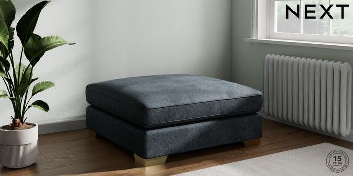 7.3.1 Buy Stamford Grand Relaxed Sit Extra Large Footstool Plush Chenille Slate Blue Square Angle - Brushed Brass from the Next UK online shop