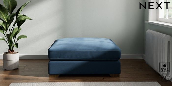 7.2.6 Buy Stamford Grand Relaxed Sit Extra Large Footstool Plush Velvet Easy Clean Airforce Blue Square Angle - Mid from the Next UK online shop Click here to use our accessible website