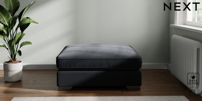 7.2.6 Buy Stamford Grand Relaxed Sit Extra Large Footstool Plush Velvet Easy Clean Charcoal Grey Square Angle - Gunmetal from the Next UK online shop Click here to use our accessible website